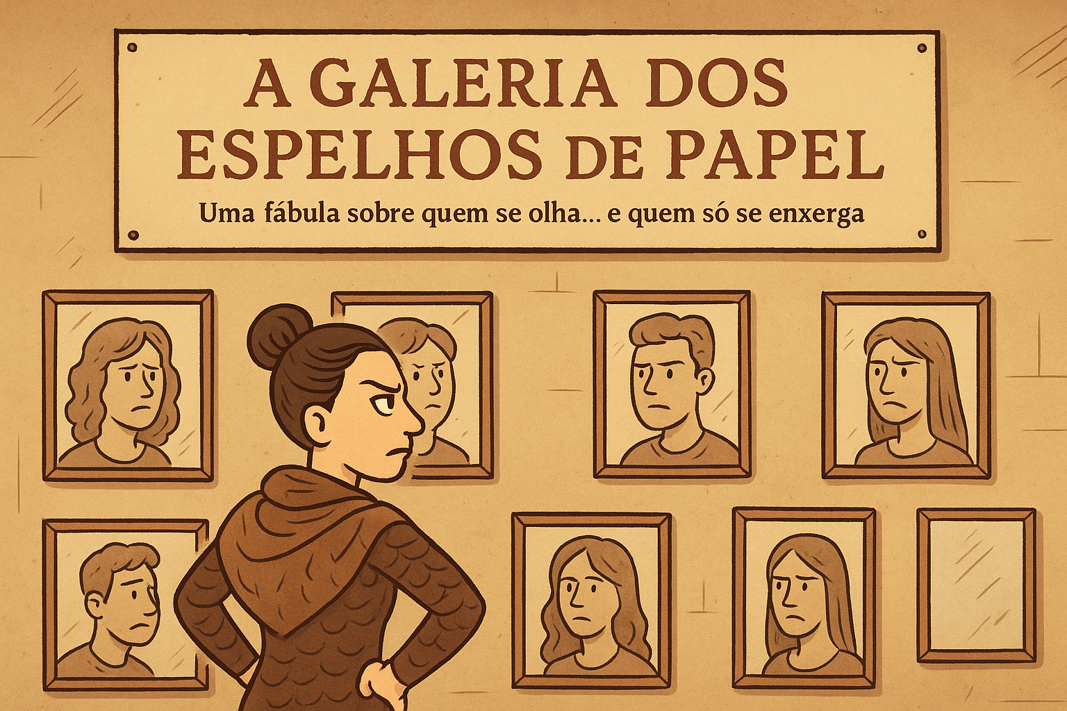 🎓 Convite do Professor Théo ao público “Olá, aqui é o Professor Théo. Eu te convido a entrar comigo na Galeria dos Espelhos de Papel — um lugar onde cada história reflete mais do leitor do que do autor. Se você gosta de boas metáforas, críticas sutis e daquela sensação gostosa de rir de si mesmo sem admitir, essa fábula foi feita sob medida. Sente-se, respire… e venha descobrir o que os espelhos revelam quando ninguém está tentando agradar ninguém.”
