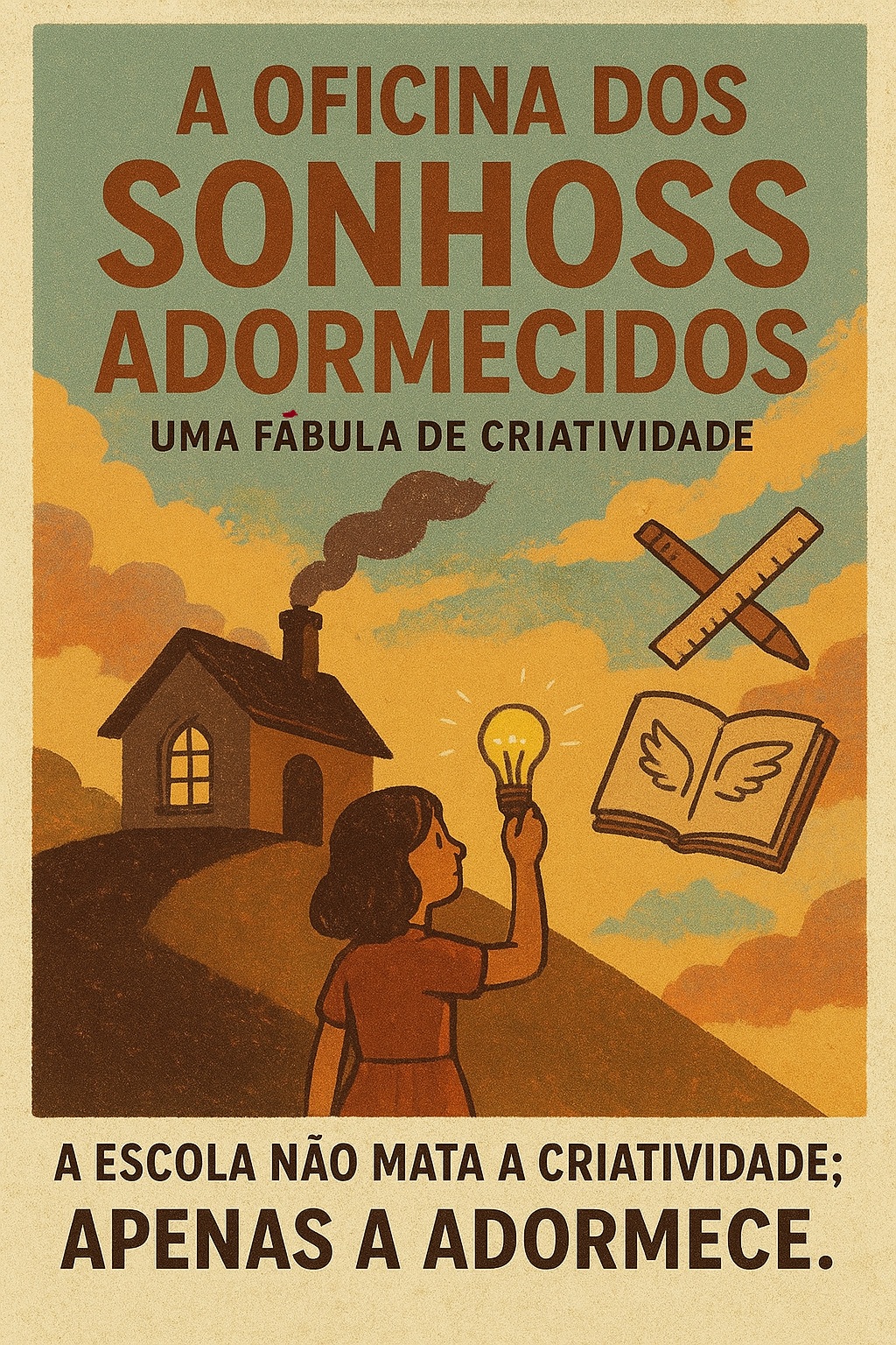 Uma história simbólica sobre o poder da imaginação, o peso dos métodos e a coragem de pensar diferente — para quem já sentiu que o sistema educacional ensina a obedecer antes de aprender a criar.